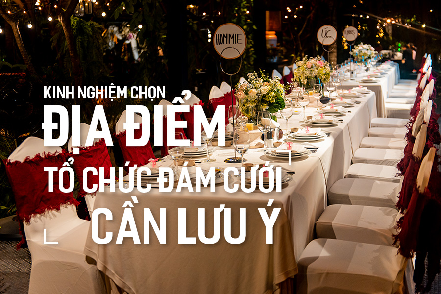 Nơi ghi dấu cho ngày vui của hai bạn không thể hời hợt, qua loa mà cần chú tâm. Đây là một trong những hạn mục quan trọng, khi đã xác định được số lượng khách mời chúng ta sẽ lựa chọn địa điểm tổ chức sao cho phù hợp với sức chứa. Bạn nên xác định tiệc cưới của bạn tổ chức trong nhà hay ngoài trời. Tùy vào ngân sách mà bạn chọn các địa điểm tổ chức tiệc cưới sao cho phù hợp nhất. Đừng vì vẻ ngoài đẹp đẽ nhưng chất lượng thì không xứng tầm sẽ làm bạn mất tiền mà bữa tiệc trở nên mất vui.