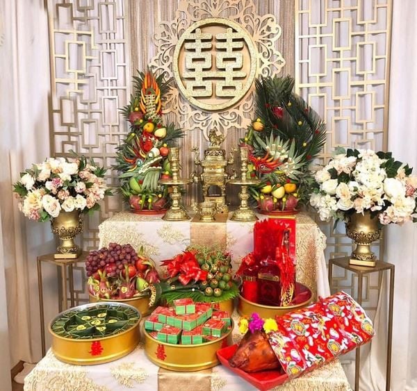 Trong phong tục cưới hỏi truyền thống của người Việt, lễ gia tiên là một nghi thức quan trọng, thể hiện sự kính trọng với tổ tiên và sự trang nghiêm trong ngày cưới. Một không gian gia tiên được trang trí chỉnh chu, đẹp mắt và hợp phong thủy sẽ không chỉ mang đến cảm giác thiêng liêng mà còn là nền tảng mở đầu viên mãn cho hôn nhân hạnh phúc.
