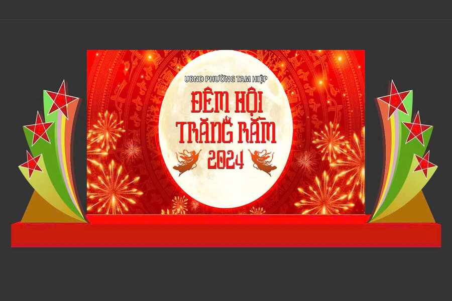 Backdrop chữ nổi 3D mang lại hiệu ứng thị giác mạnh mẽ và tạo chiều sâu cho không gian sự kiện. Logo hoặc tên chương trình được gia công bằng mica, formex hoặc kim loại, sau đó kết hợp với hệ thống đèn chiếu sáng để tăng độ nổi bật.